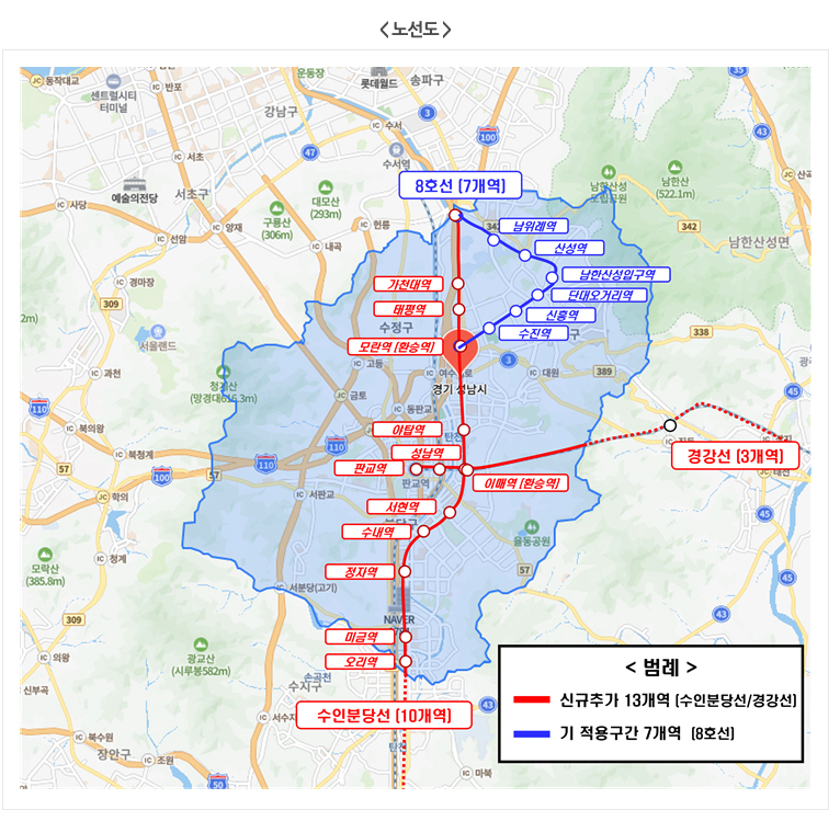 - 기존 이용 가능 역: 지하철 8호선 모란~남위례 구간 7개 역