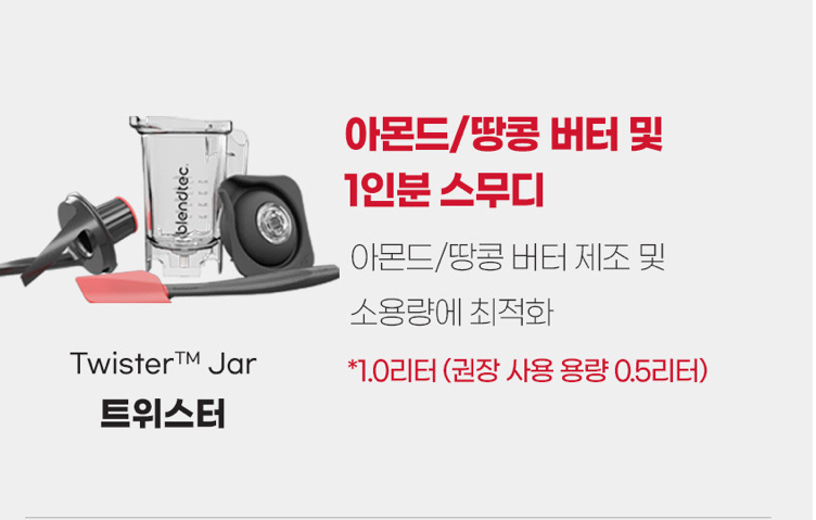 만약 넛버터를 만들려고 블렌텍 구매를 고려 중이시라면 블렌텍 기본 구성에는 옵션을 추가구매하셔야 해요.