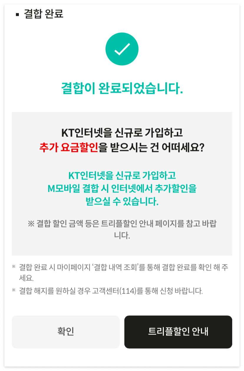 → 결합신청 클릭!! 해서 진행하시고 마지막에 결합 완료 메시지를 확인하시면 끝입니다.
