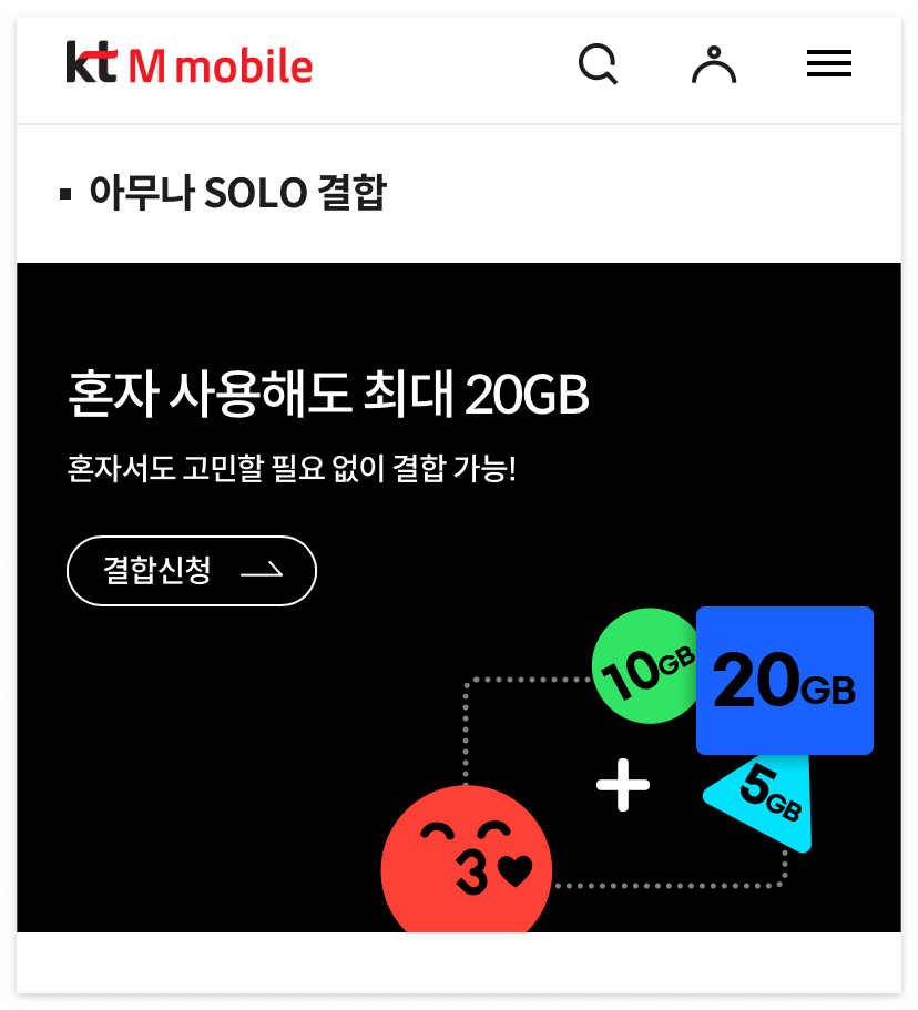 바로 '아무나 solo 결합'(아무나 솔로 결합) 서비스를 신청하면 무료로 10GB를 더 사용할 수 있게 되기 때문이예요.