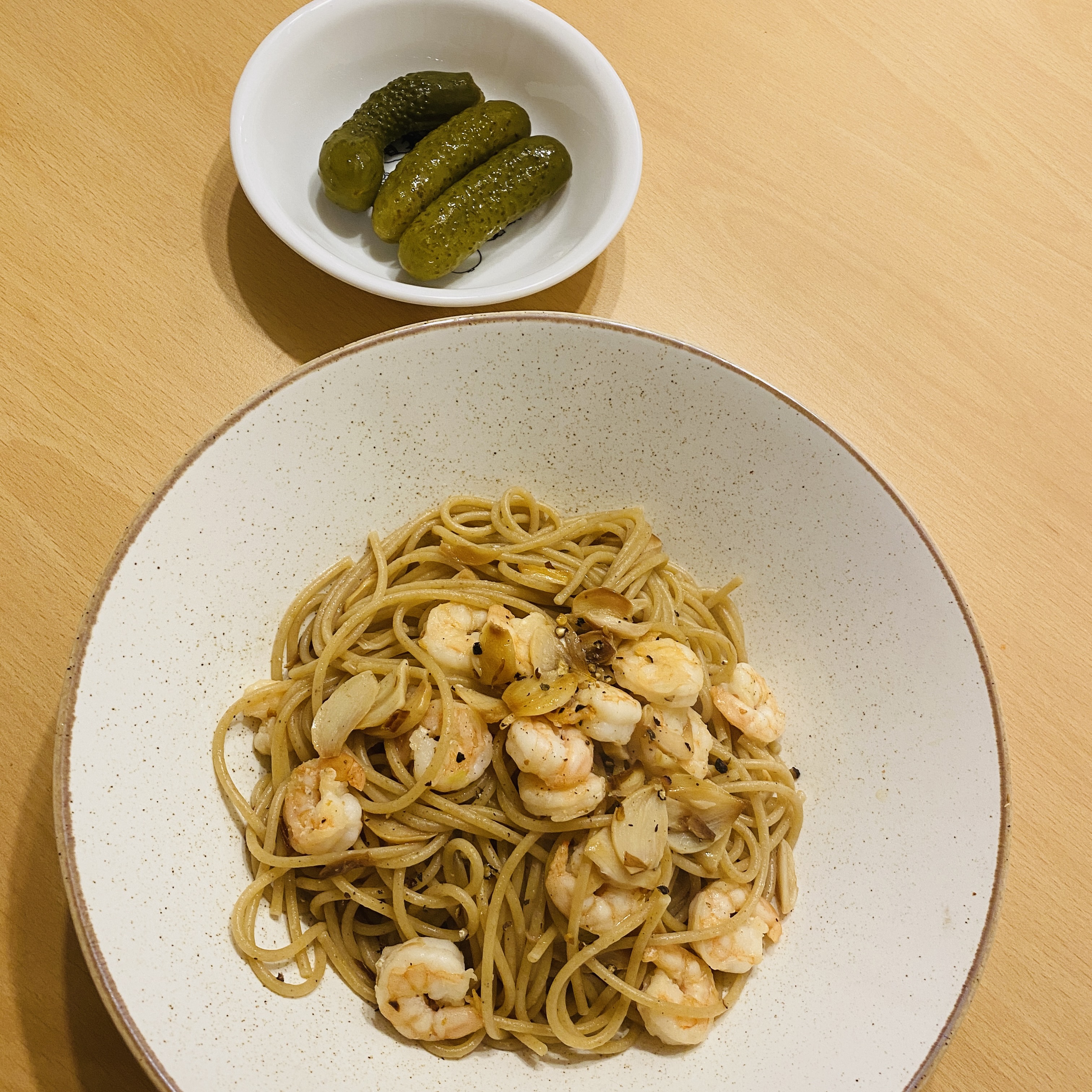 [저녁] 알리오 올리오 파스타 + 냉동새우