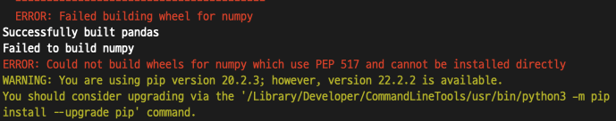 위에서 /Library/Developer/CommandLineTools/usr/bin/python3 -m pip install --upgrade pip 부분을 복사해서 그대로 커멘드창(터미널)에 붙여넣고 실행하면 pip버전이 업그레이드된다.