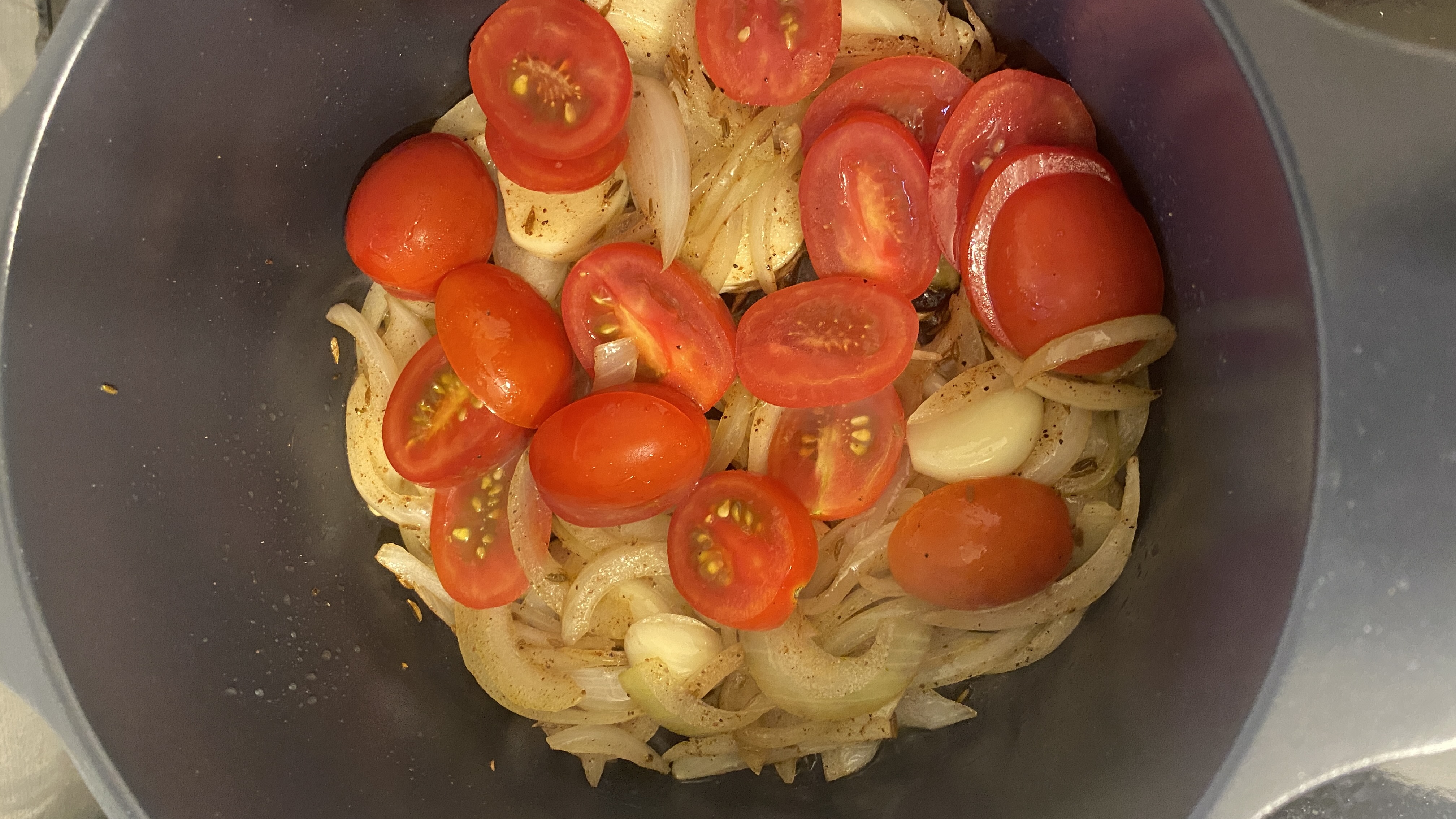 재료 : 양파 1개, 마늘 6알, 방울토마토 6개