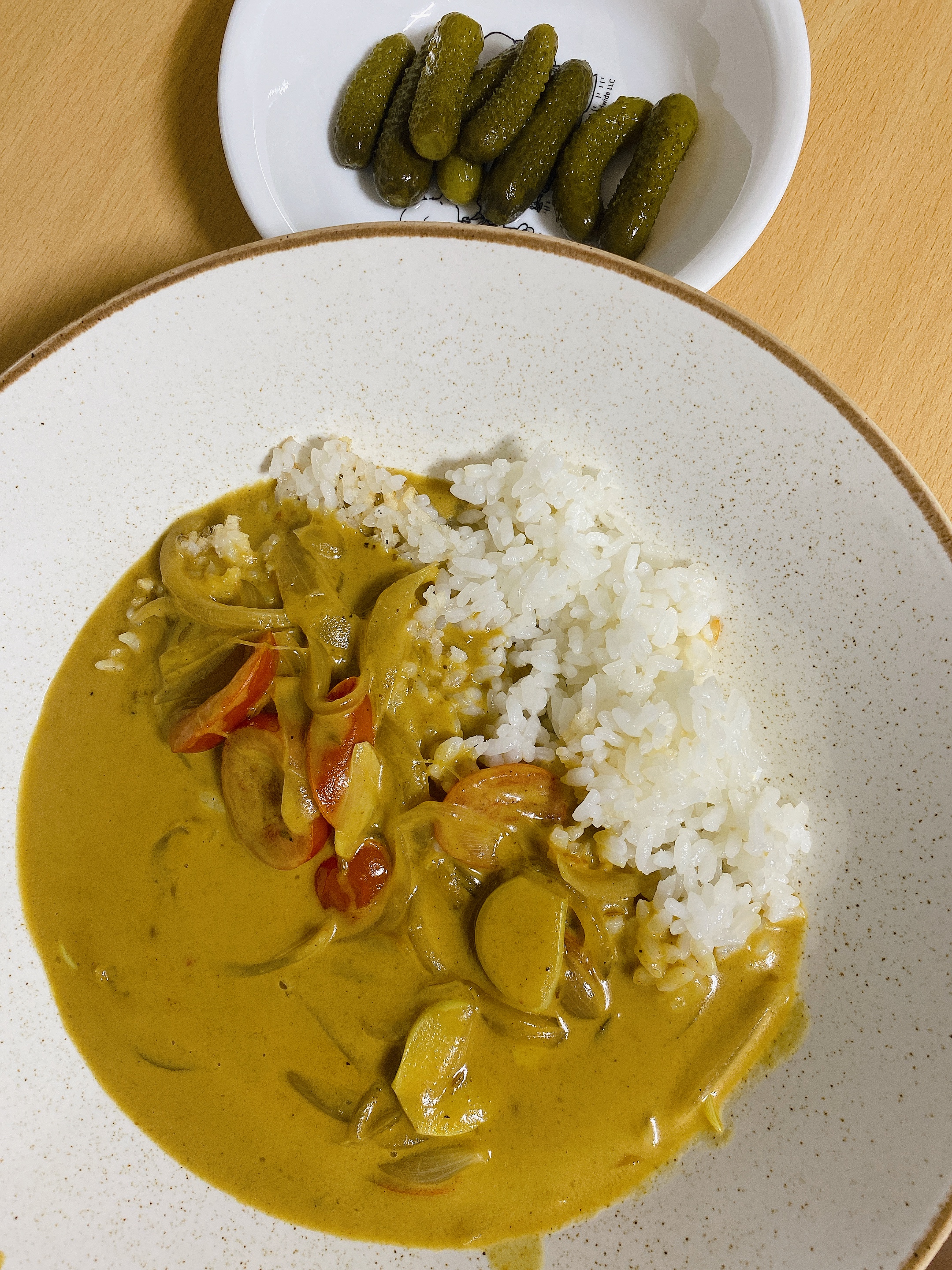 * 재료는 집에 있는 것 중 밖에서 파는 코코넛밀크 들어간 카레의 재료로 어울리는 재료 중 집에 있는 걸 넣었다.