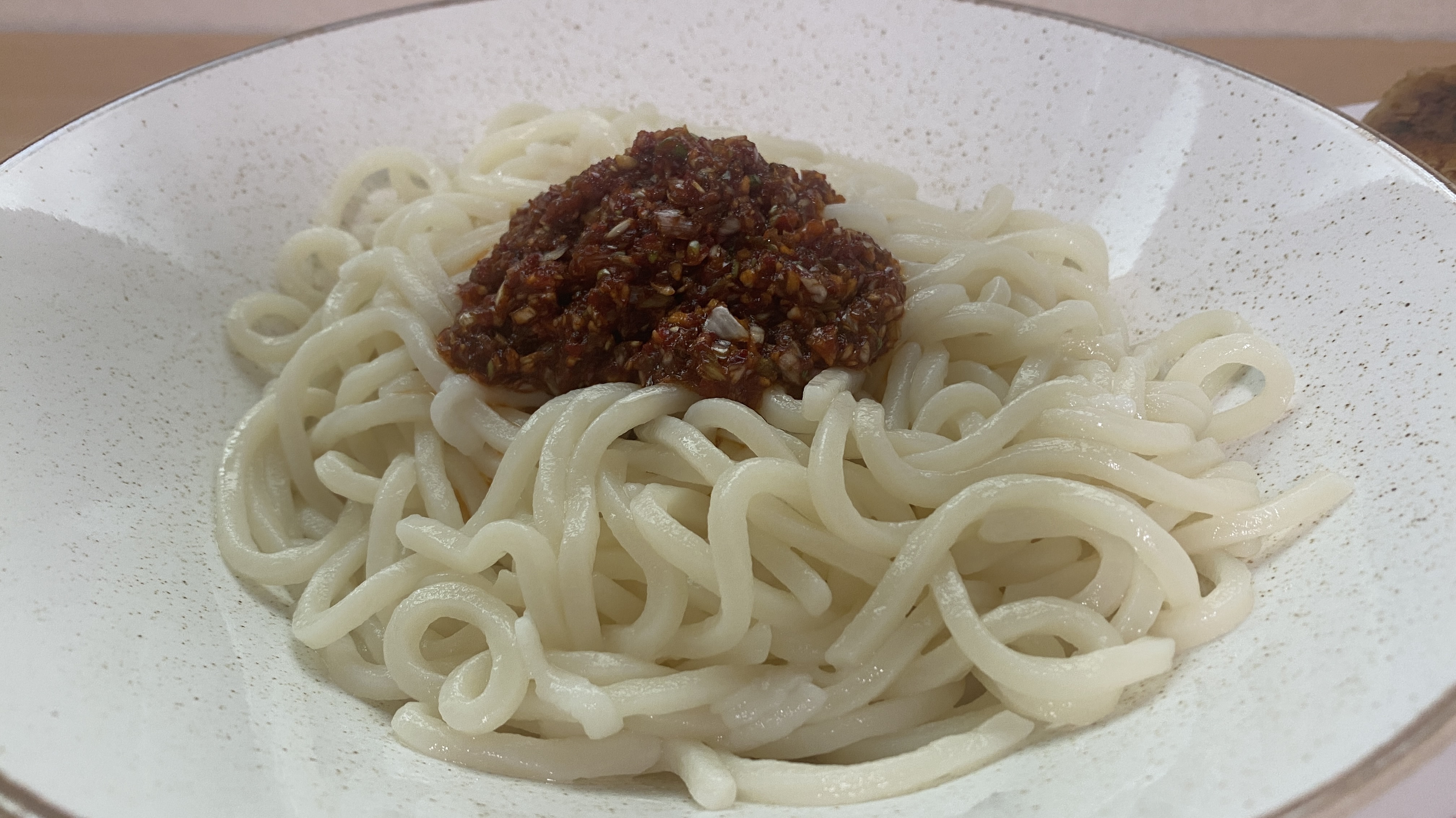 다만 우리에게 익숙한 칼국수면이 이 소스를 쫙 빨아들이기 때문에 질 좋은 생칼국수면보다는 일반 칼국수면을 쓰길 권하고 싶다.