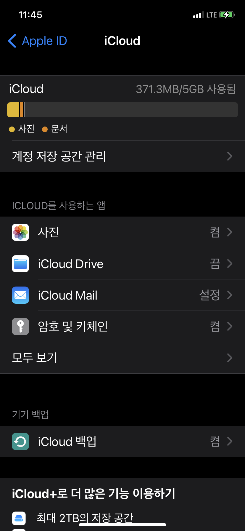 * 설정 > Apple ID > iCloud > 계정 저장 공간 관리